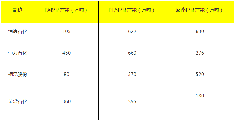聚酯產(chǎn)業(yè)巨頭企業(yè)產(chǎn)能信息